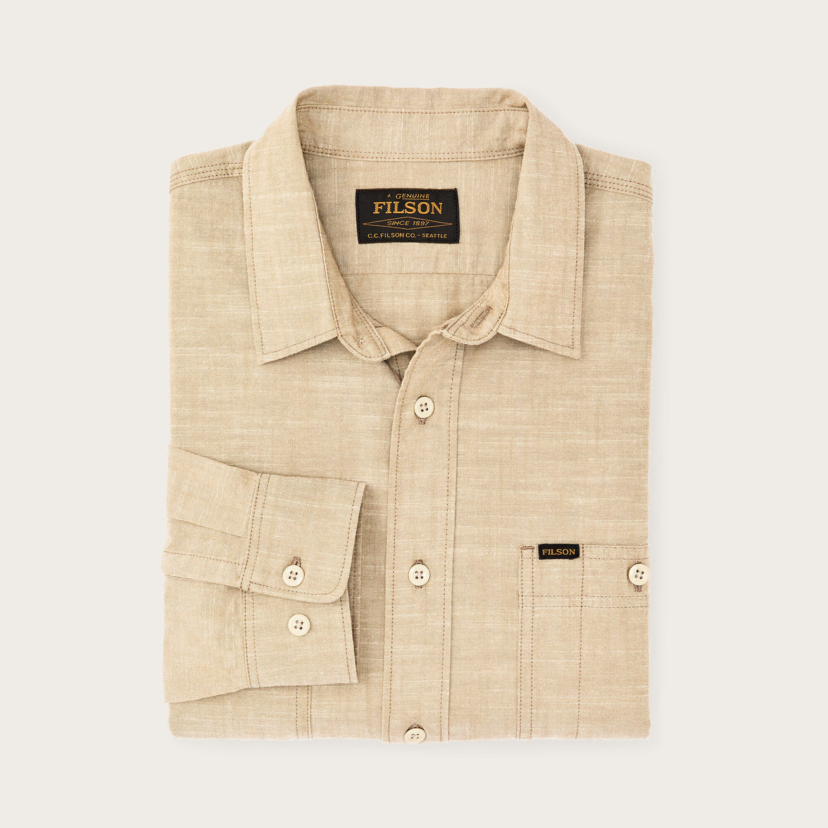 - Hergestellt aus robustem, leichtem Chambray aus 100 % Baumwolle