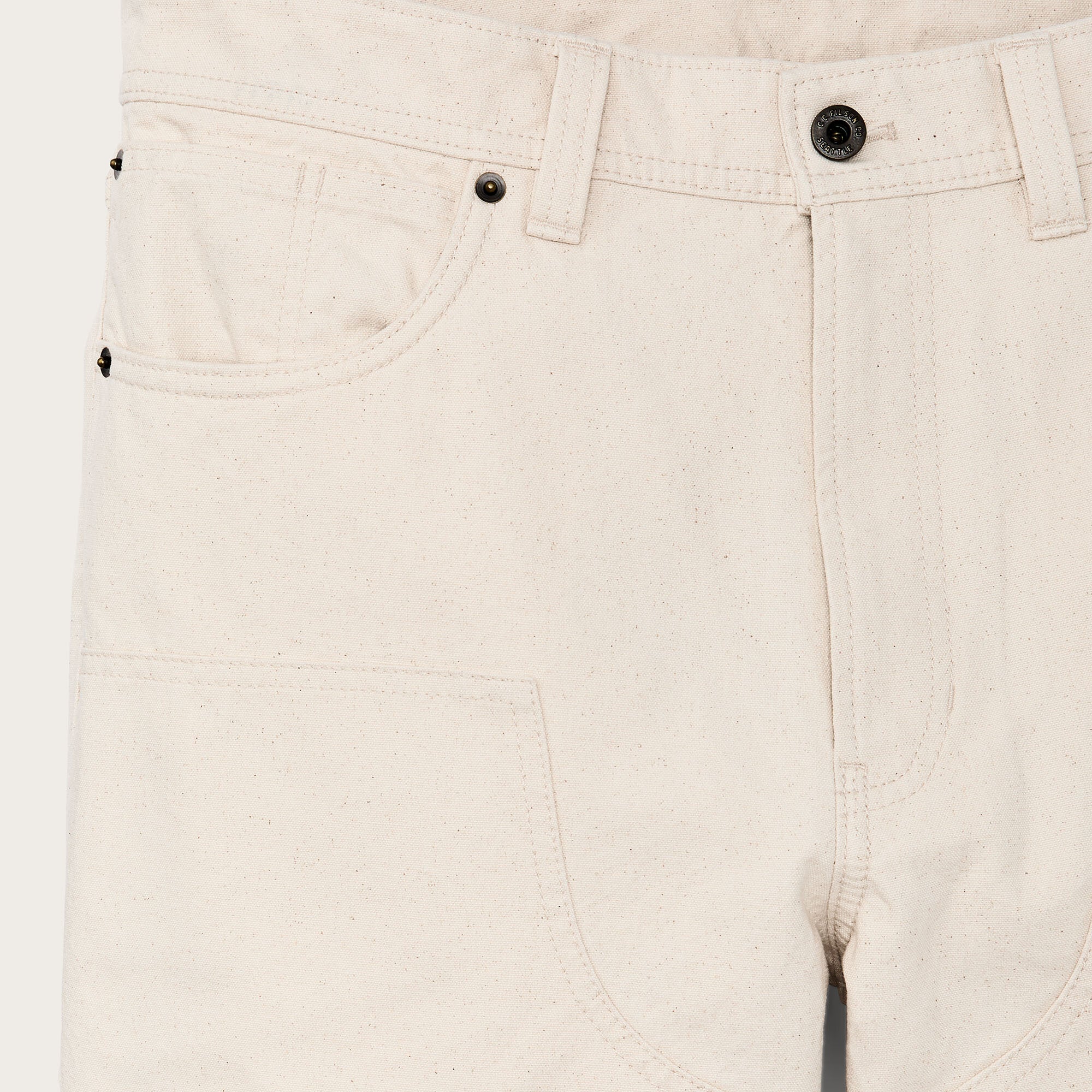 Unsere Dry Tin Cloth Double Front Pants werden aus demselben ungewachsten Canvas gefertigt, dem im harten Einsatz seit über einem Jahrhundert vertraut wird. Robust genug für Baustellen im pazifischen Nordwesten, für die Arbeit auf der Ranch und für Tage, die nicht enden wollen. Die doppellagige Vorderseite bietet dort Schutz, wo er am meisten gebraucht wird.
