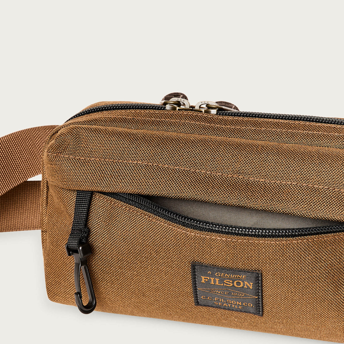 Das kompakte Design kann wie ein Sling-Pack quer über den Körper oder als Hip-Pack um die Hüfte getragen werden. Eine großzügige Reißverschlussöffnung ermöglicht klare Übersicht und einfachen Zugriff auf das Hauptfach, während eine Reißverschluss-Außentasche mit integriertem Schlüsselband kleine Gegenstände sicher und jederzeit griffbereit aufbewahrt. Die Rückenpartie aus Mesh bietet Atmungsaktivität.