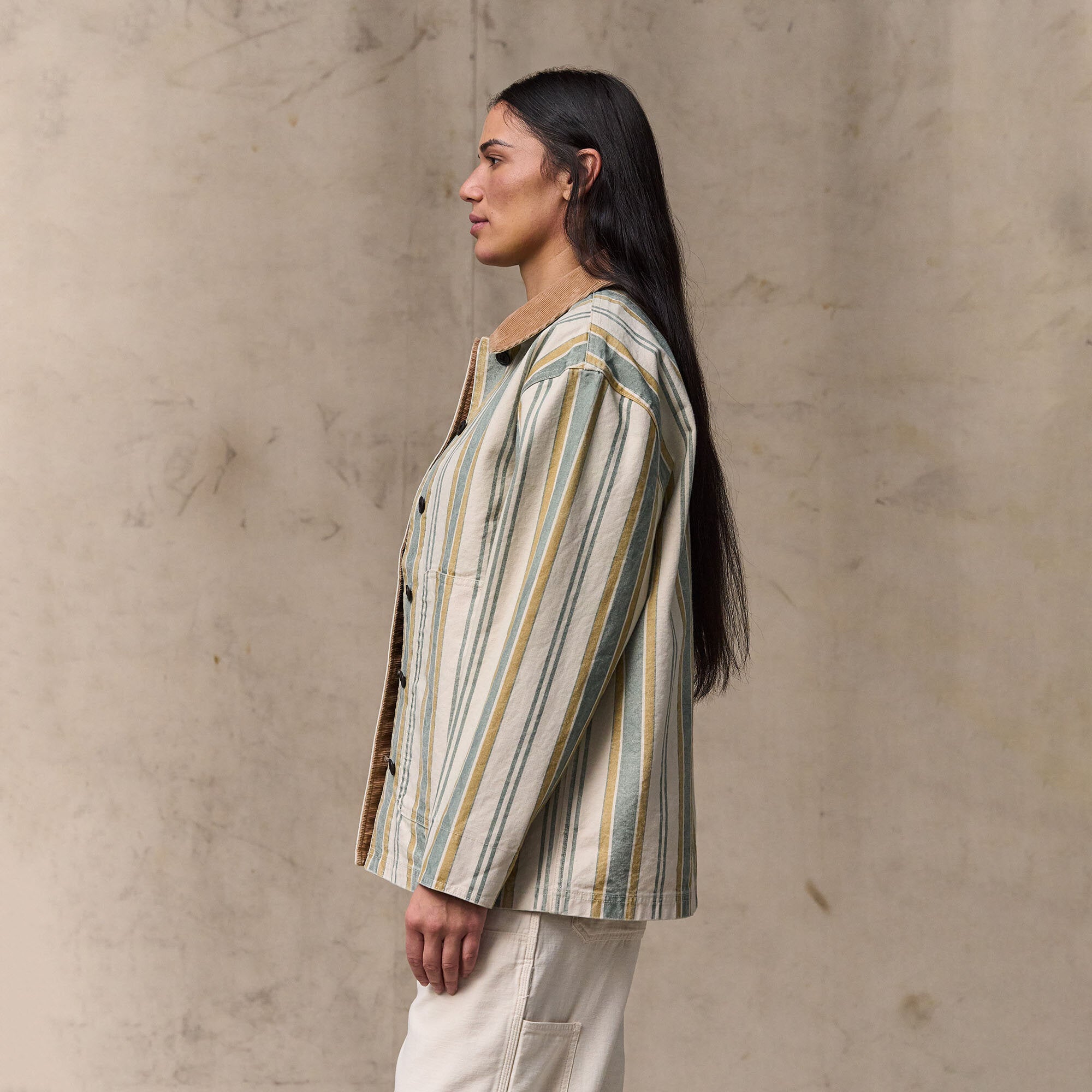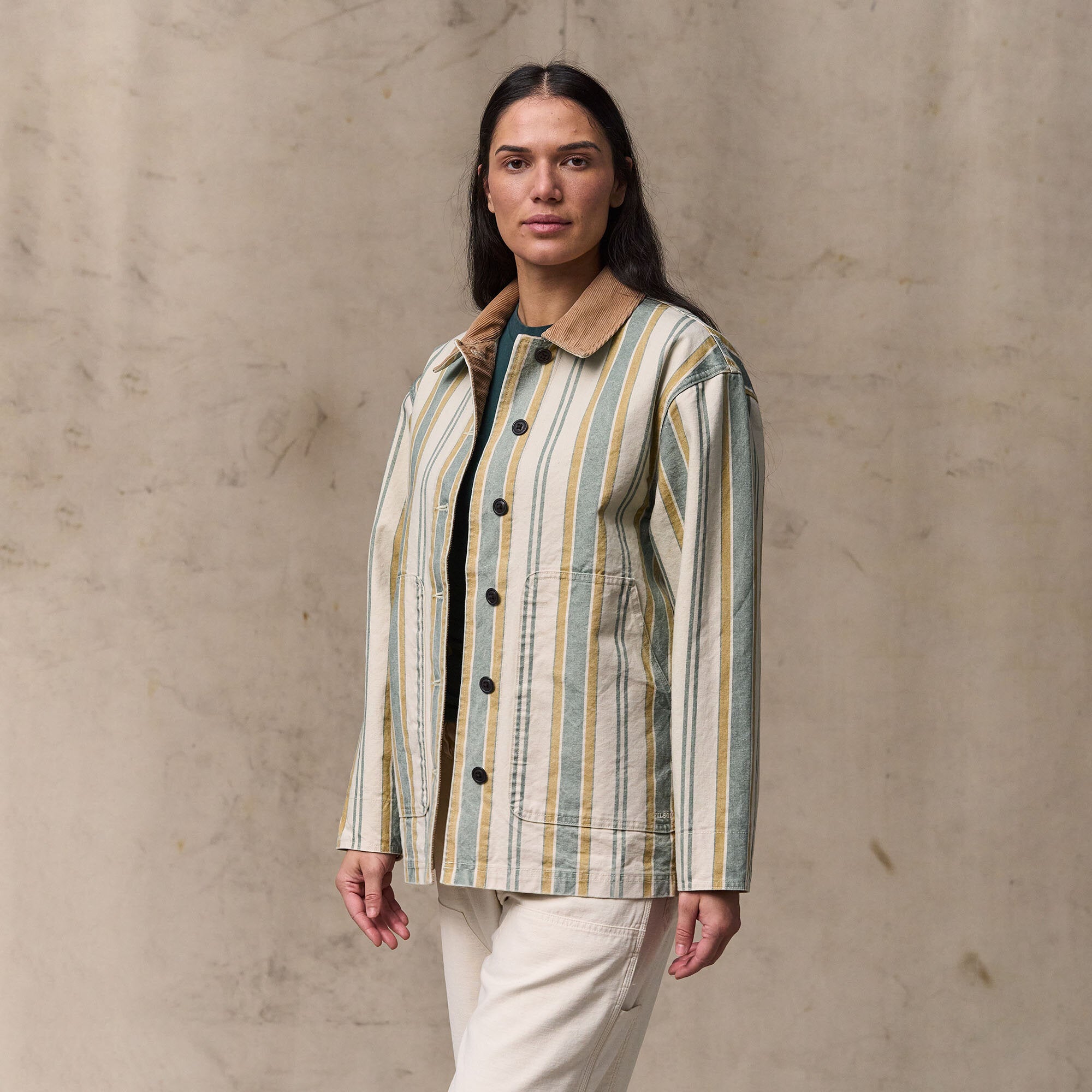 Ce modèle classique offre une protection fiable contre le vent, les broussailles et les ronces. Caractérisé par sa simplicité, il fonctionne tout aussi bien pour une utilisation quotidienne. La toile résistante acquerra un caractère usé par le temps et patiné par l'usage, pour des décennies d'utilisation polyvalente. Le col, les poignets et la patte de boutonnage frontale sont doublés d'un épais velours côtelé de coton pour plus de confort. La coupe décontractée est ample, donc si vous êtes entre deux tailles, nous vous recommandons de commander la taille la plus petite.