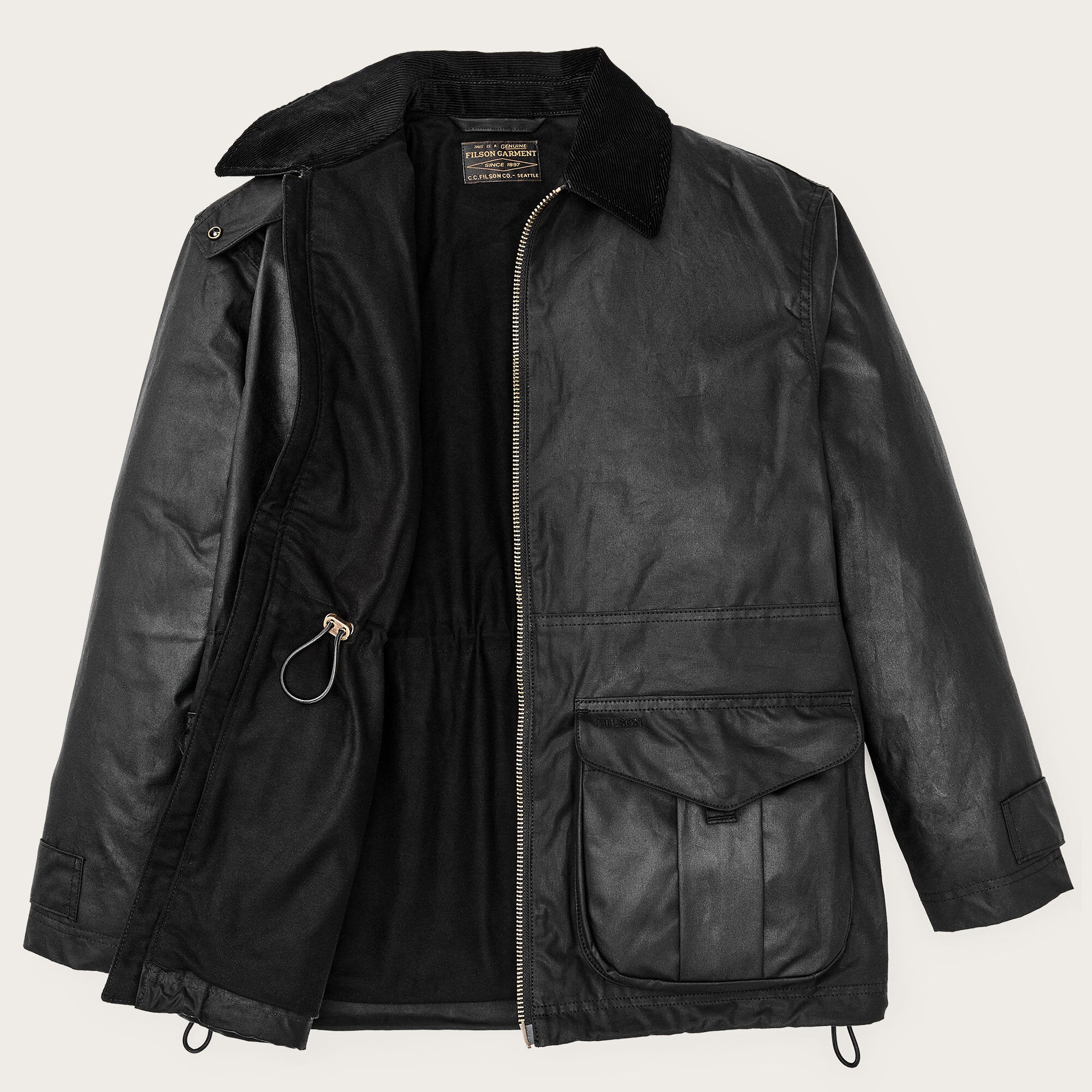 Ne pas laver ou nettoyer à sec - brosser ou essuyer avec un chiffon humide. Appliquer une nouvelle couche de cire si nécessaire pour maintenir une résistance maximale à l’eau. Pour éviter le transfert de l’huile, nous recommandons d’éviter tout contact prolongé entre les articles Filson à finition huilée et les tissus de couleur claire, en particulier par temps chaud.
