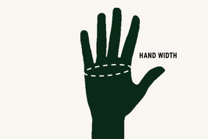 LUNGHEZZA. Tenendo la mano aperta, misurare la mano dominante dalla punta del dito medio fino alla piega alla base del palmo.