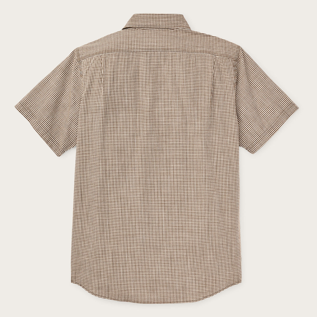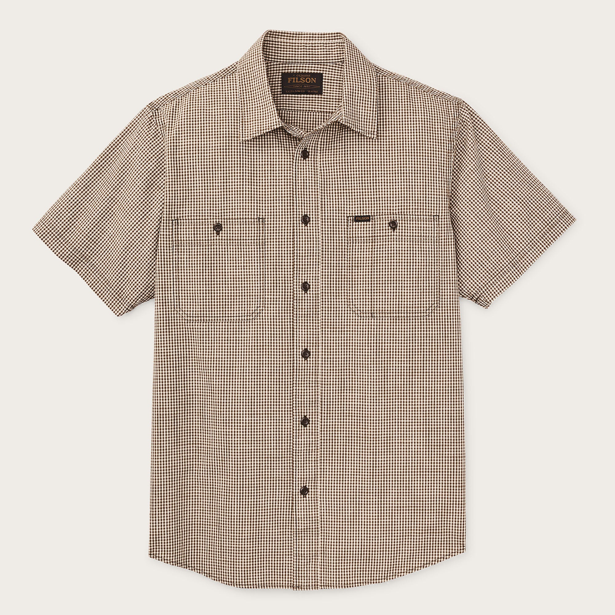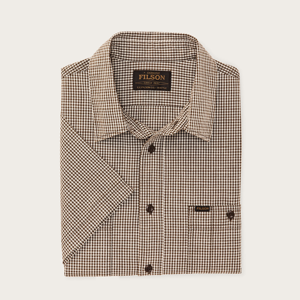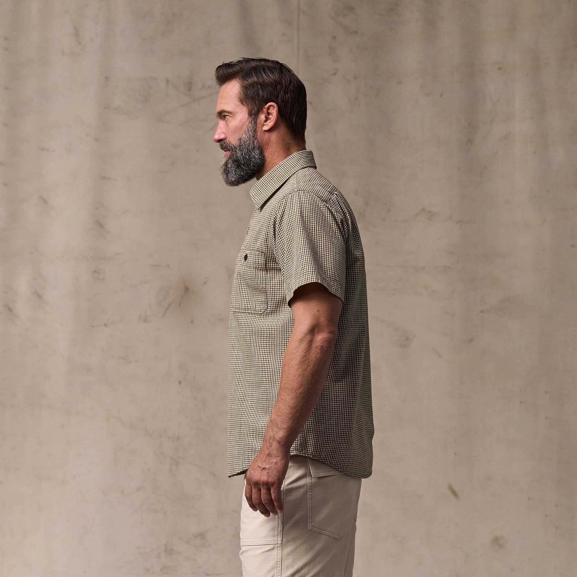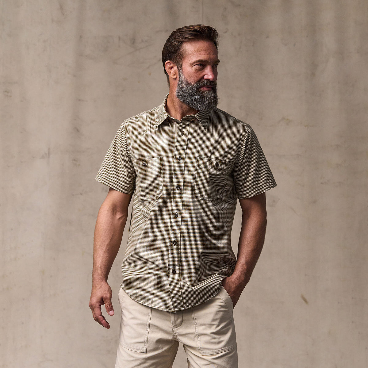 Sorprendentemente robusta e leggera, la camicia a maniche corte in chambray rappresenta un vero e proprio must-have per la bella stagione. Il modello è realizzato in cotone chambray di peso medio, un tessuto caratteristico delle camicie da lavoro rinomato per la sua elevata resistenza. Questo tessuto a ordito è molto simile al denim: per la tessitura, infatti, vengono utilizzati filati di ordito e trama di colore diverso. Lo chambray presenta un'armatura tela simmetrica, che si differenzia dalla trama in twill del denim. Le doppie pieghe a coltello sul retro, in corrispondenza delle spalle, consentono una maggiore libertà di movimento. Presenta tasche sul petto con bottoni e scomparto portamatita cucito all’interno della tasca sinistra.