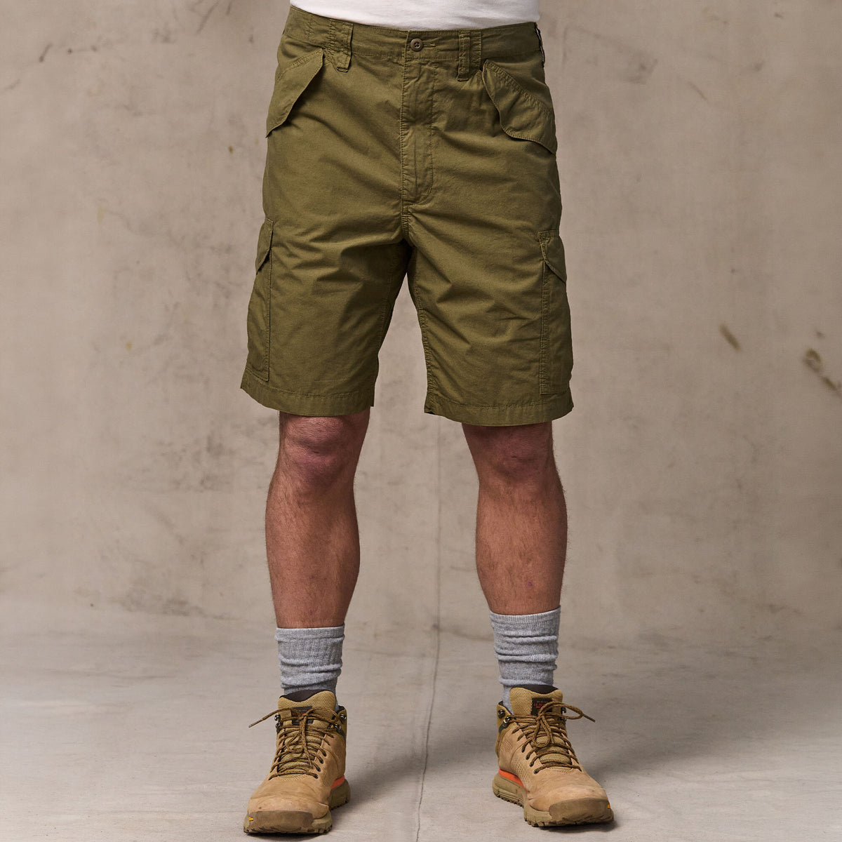 I nostri pantaloncini cargo in popeline Tropical riprendono il design dei pantaloni cargo indossati dall’esercito statunitense negli anni Quaranta e sono progettati per garantire libertà di movimento, praticità e comfort nei mesi più caldi. Realizzati in popeline di cotone da 142 g, sono leggeri, traspiranti e ad asciugatura rapida, caratteristiche che li rendono ideali per lunghe giornate all'aperto o in viaggio.