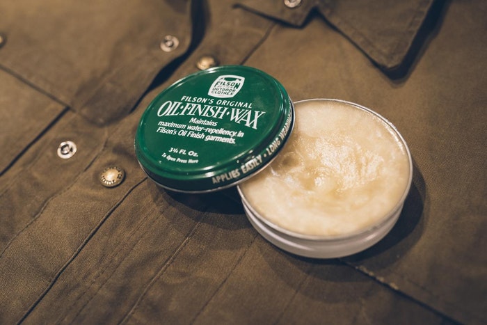 Our waxed cotton clothing is built for years of rugged use in the great outdoors. When re-waxing is needed, use only Filson’s Original Oil Finish Wax. It has a proprietary blend of paraffin wax and softening oils that are an exact match for the original factory-applied waxed finish. Do not be tempted to use beeswax or other waxes, as they will not blend with the existing wax in the fabric, and do not create the surface tension required to maximize water resistance.