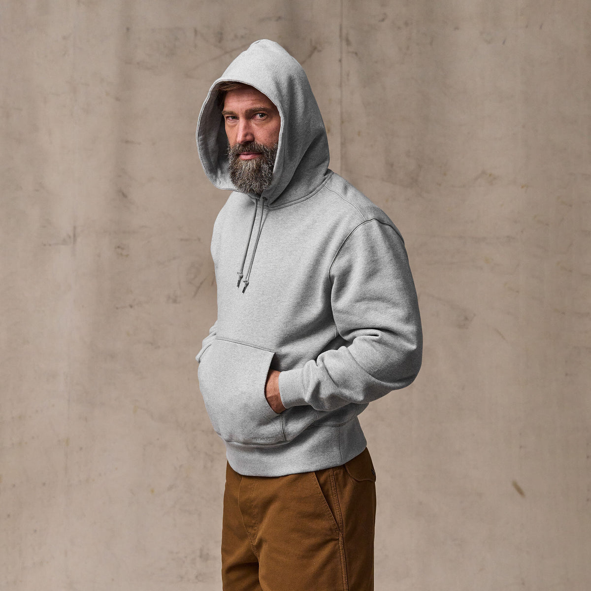 A heavy-duty hoodie that stands apart from the rest. You’ll feel the difference from the first wear. Premium 14.6-oz.100% Peruvian cotton is lofted on the interior for comfortable warmth and smooth on the exterior for resistance to pilling. Rib-knit side panels, cuffs, and hem provide a custom fit. The drawcord-adjustable hood is sized to fit over ball caps and hardhats. Kangaroo front pocket.