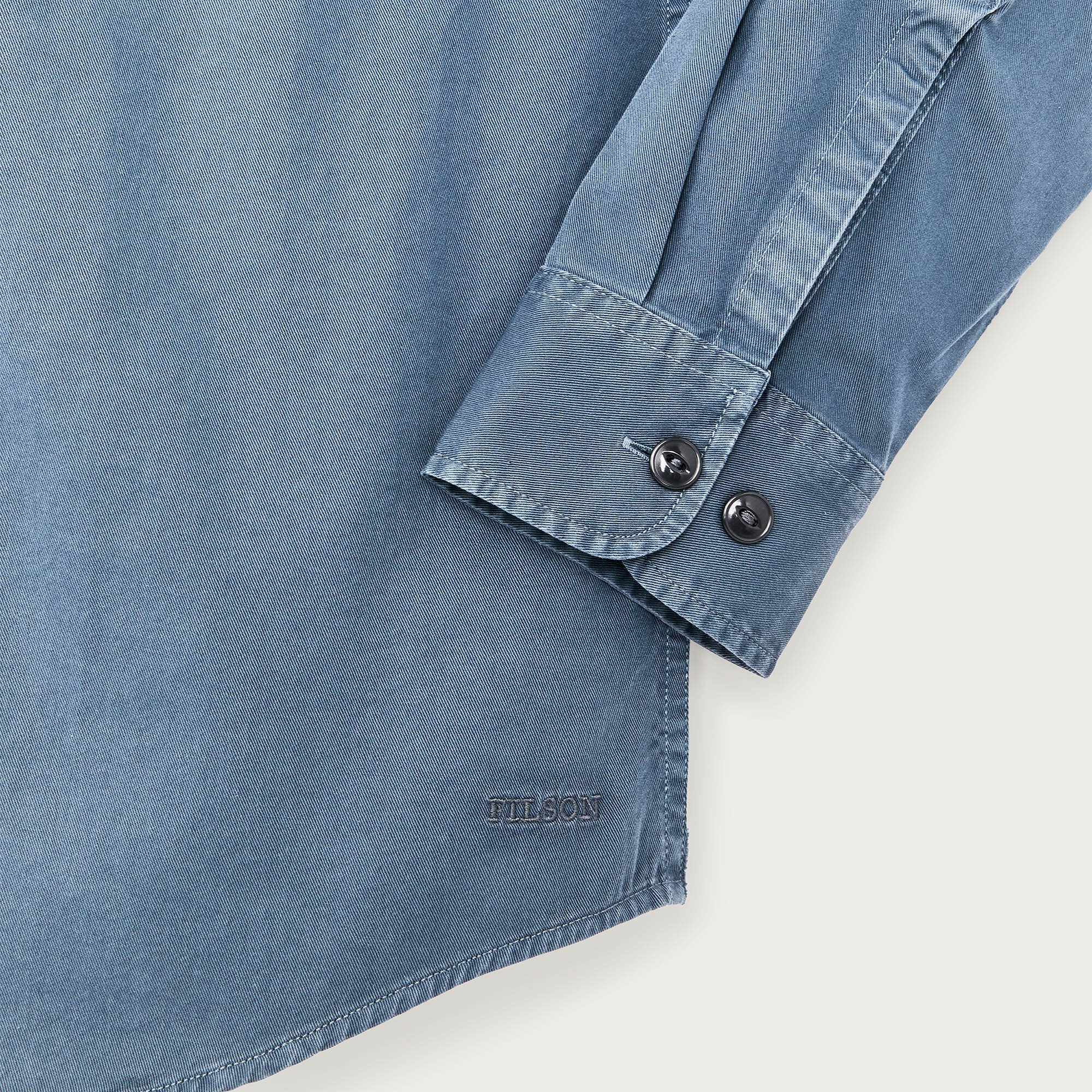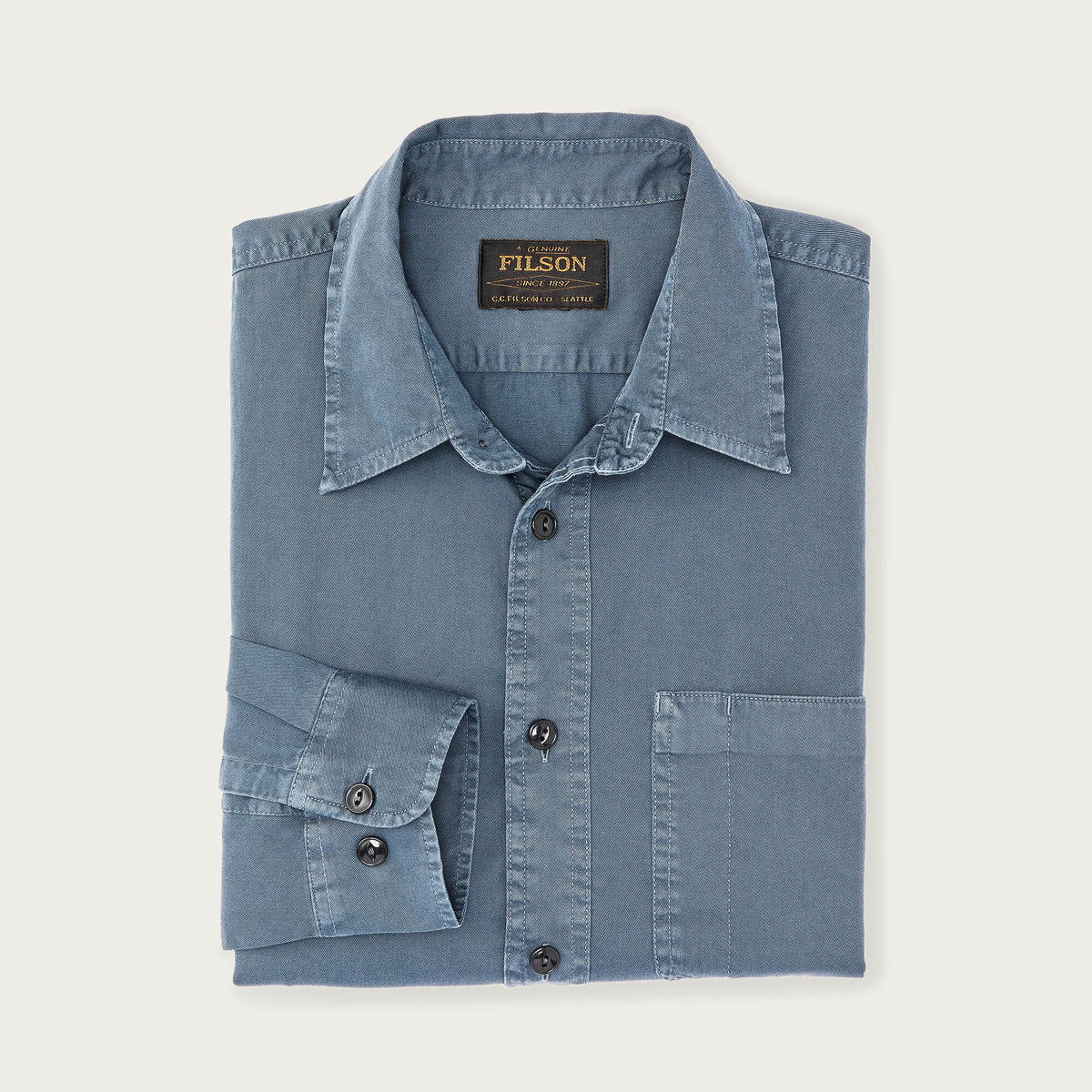 A straightforward wardrobe staple. This button-front shirt is made with premium 100% cotton that holds its shape and provides years of service. The ideal casual shirt for projects in the workshop, meeting a client to review blueprints, or in the steakhouse afterwards. Single front chest pocket with a slot for a carpenter pencil. Dual knife pleats in back shoulders. Straight collar.