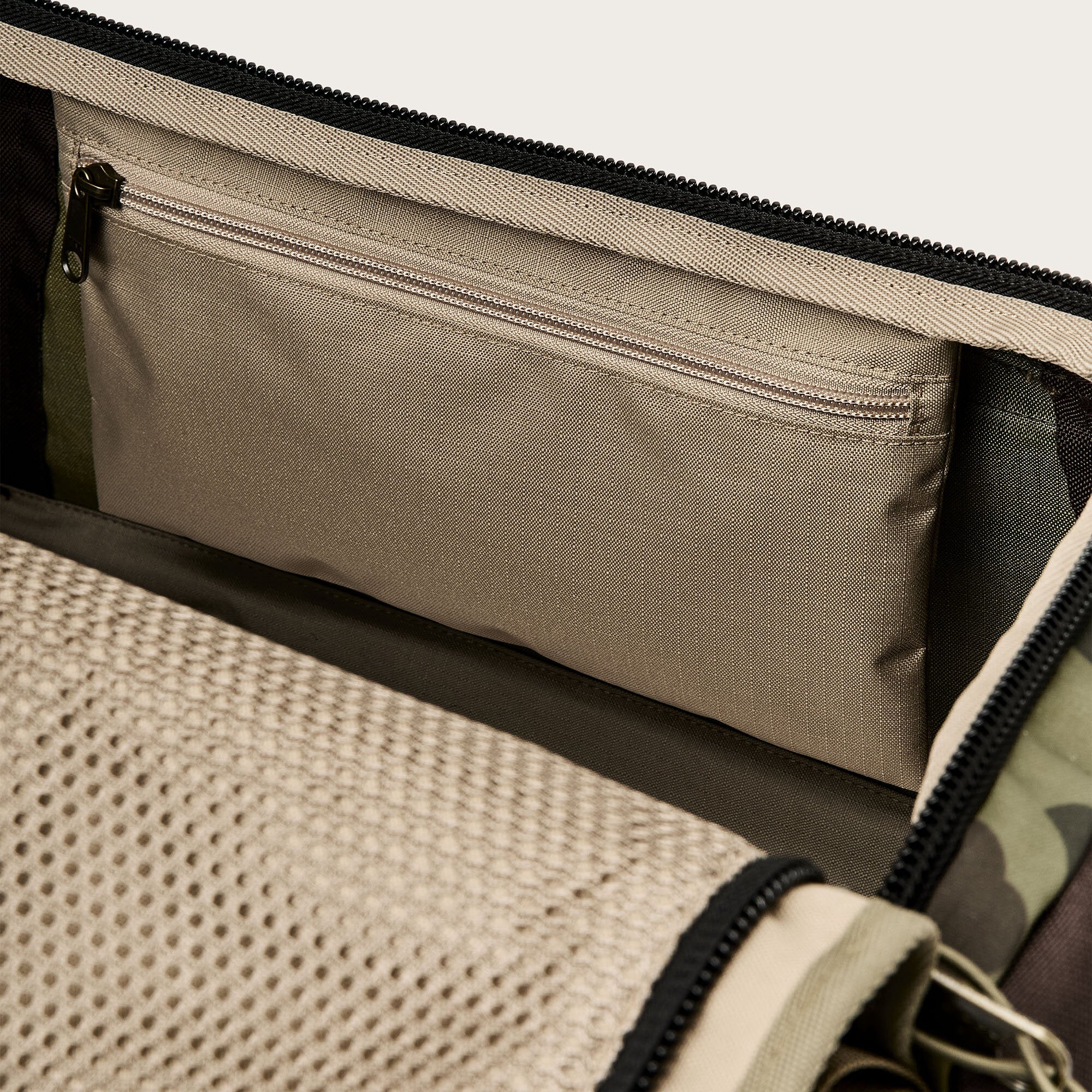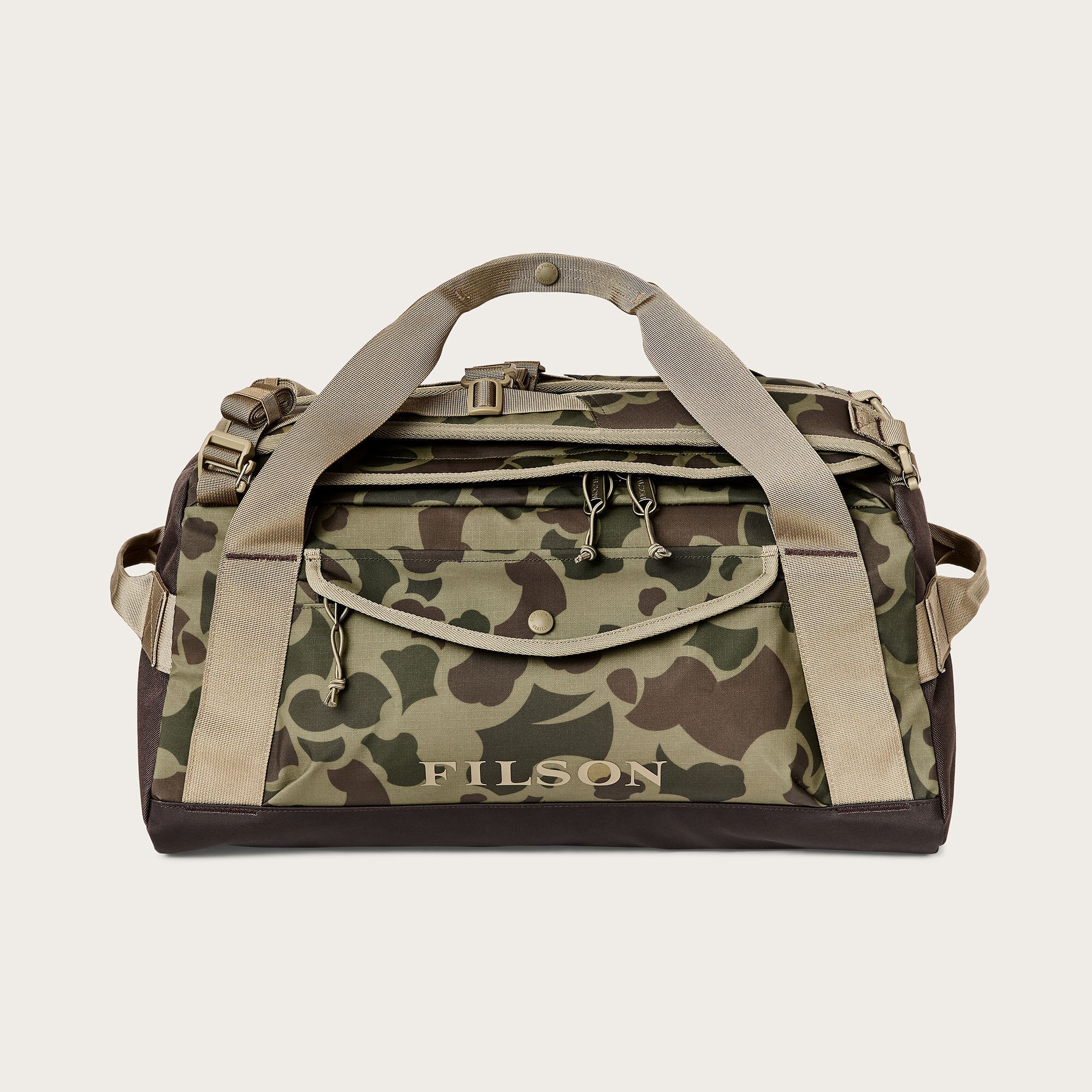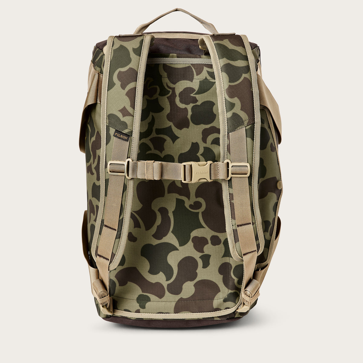 Padded, contoured shoulder straps with an adjustable sternum strap enable hands-free carry. They are removable to prevent snagging during transport. The full length of the main compartment’s U-shaped zipper is covered by an extended storm guard for added water protection. The endcap grab handles and main carry handles are made from strong, durable nylon webbing. An interior zip-close hanging pocket and exterior snap-flapped pocket keep small essentials organized, and the entire top opening panel is covered with a zippered mesh pocket.