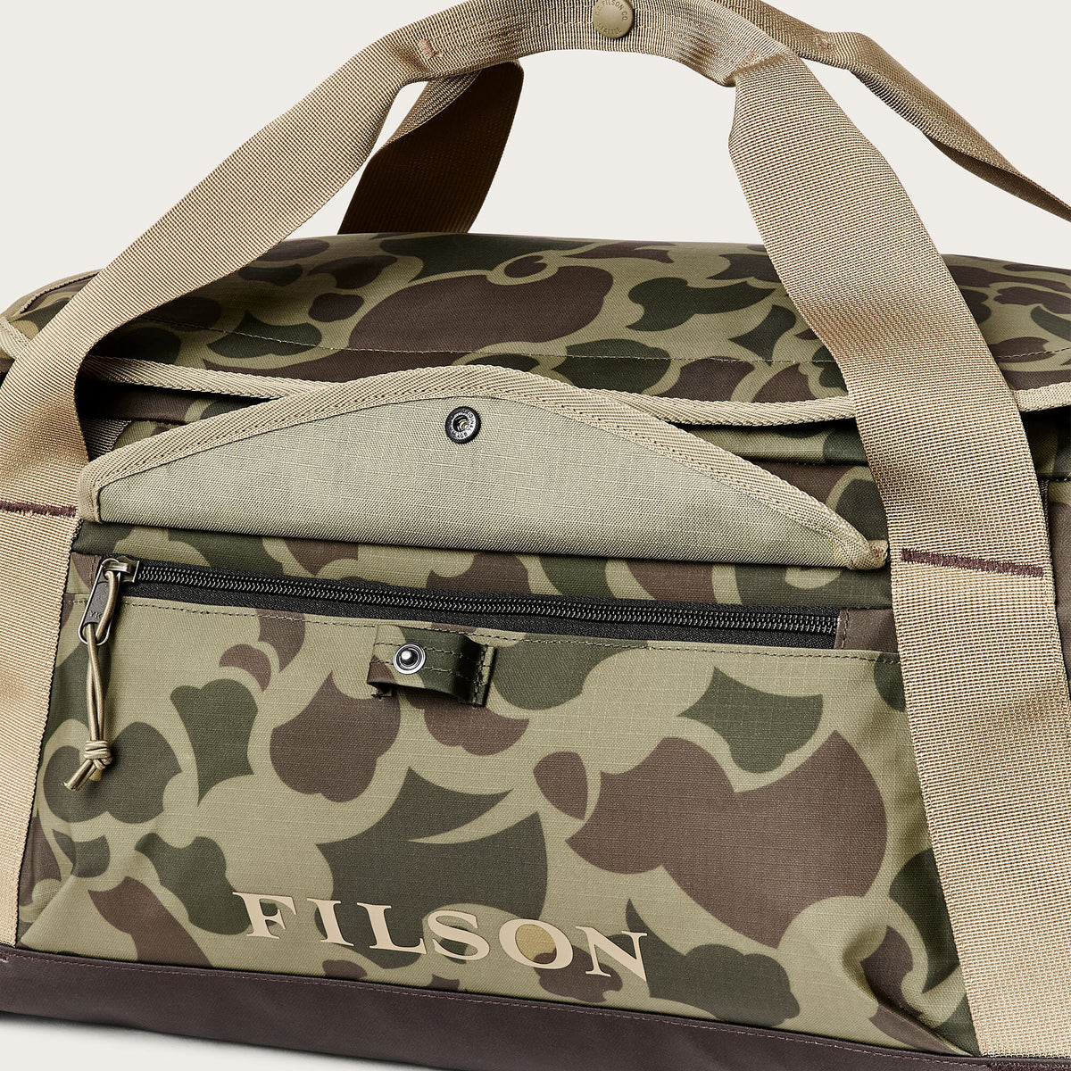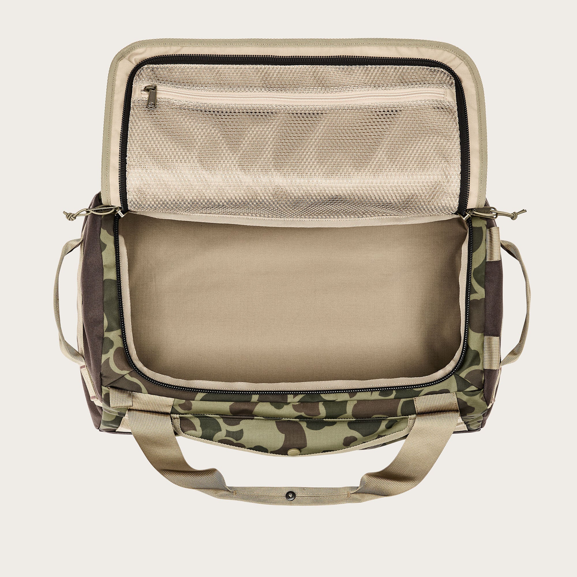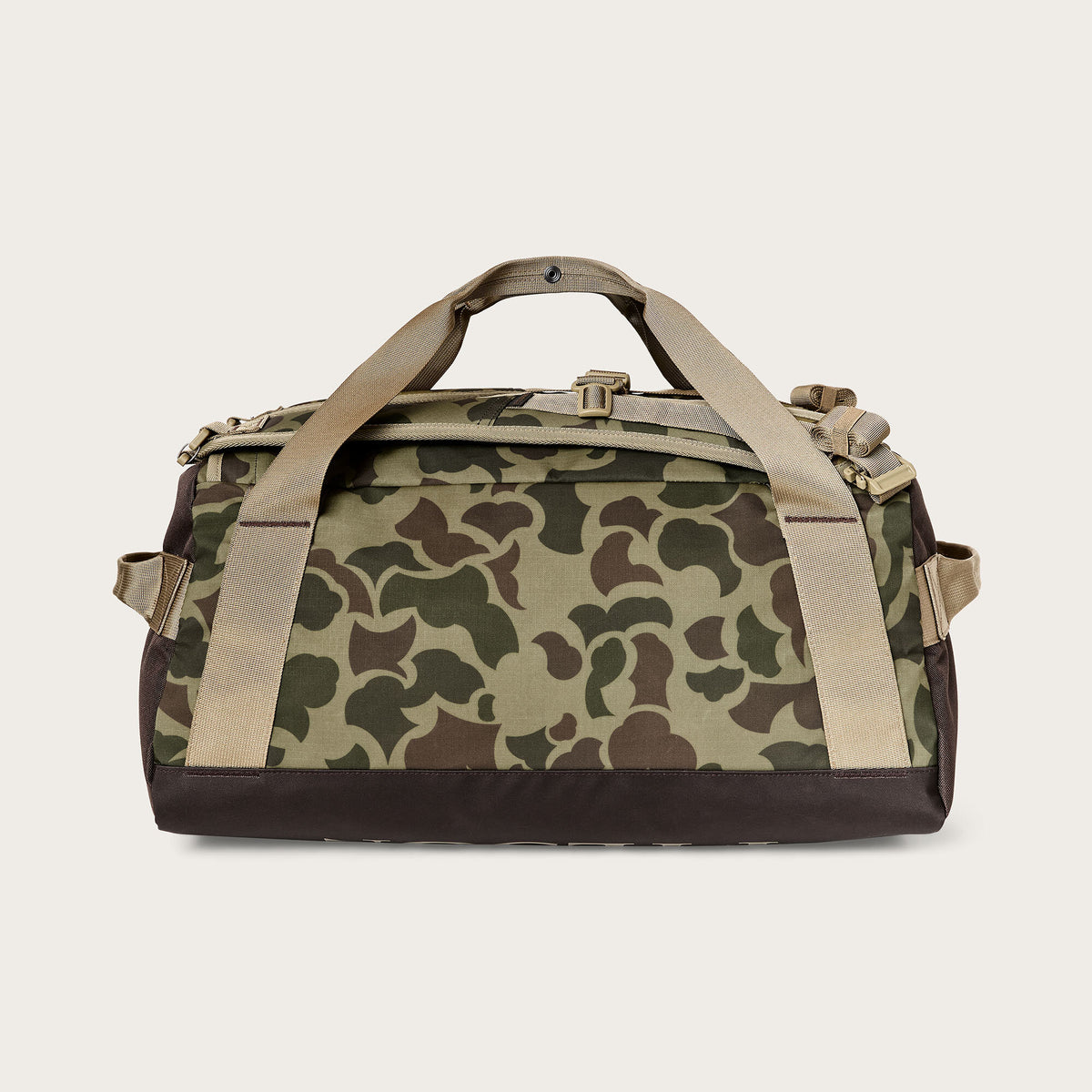 Padded, contoured shoulder straps with an adjustable sternum strap enable hands-free carry. They are removable to prevent snagging during transport. The full length of the main compartment’s U-shaped zipper is covered by an extended storm guard for added water protection. The endcap grab handles and main carry handles are made from strong, durable nylon webbing. An interior zip-close hanging pocket and exterior snap-flapped pocket keep small essentials organized, and the entire top opening panel is covered with a zippered mesh pocket.