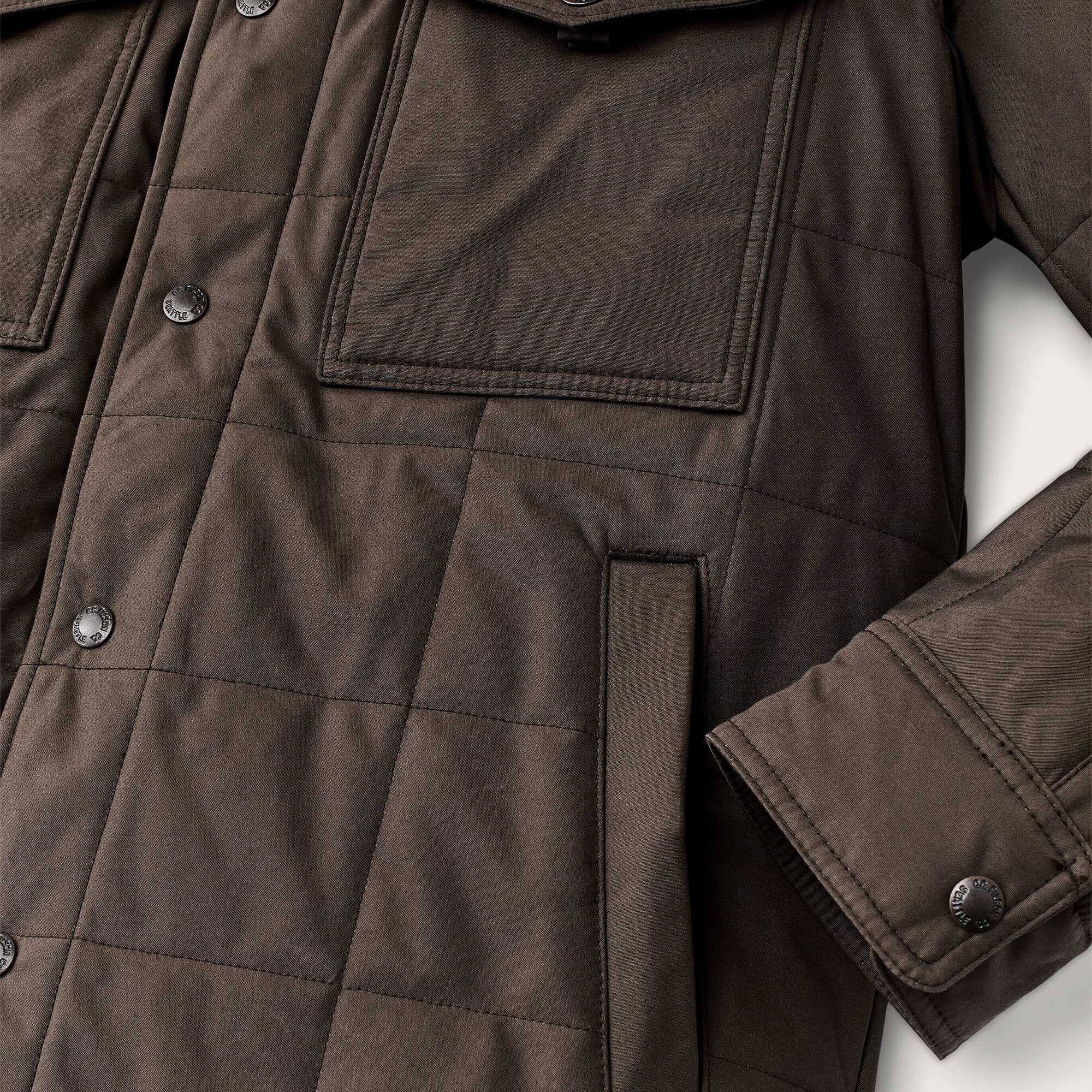 Hand pockets are lined with our warm signature Alaska Guide flannel cotton. Chest pockets secure with snapped flaps that are one-hand-operable. Snap-secure front closure and adjustable cuffs. Shirttail hem.