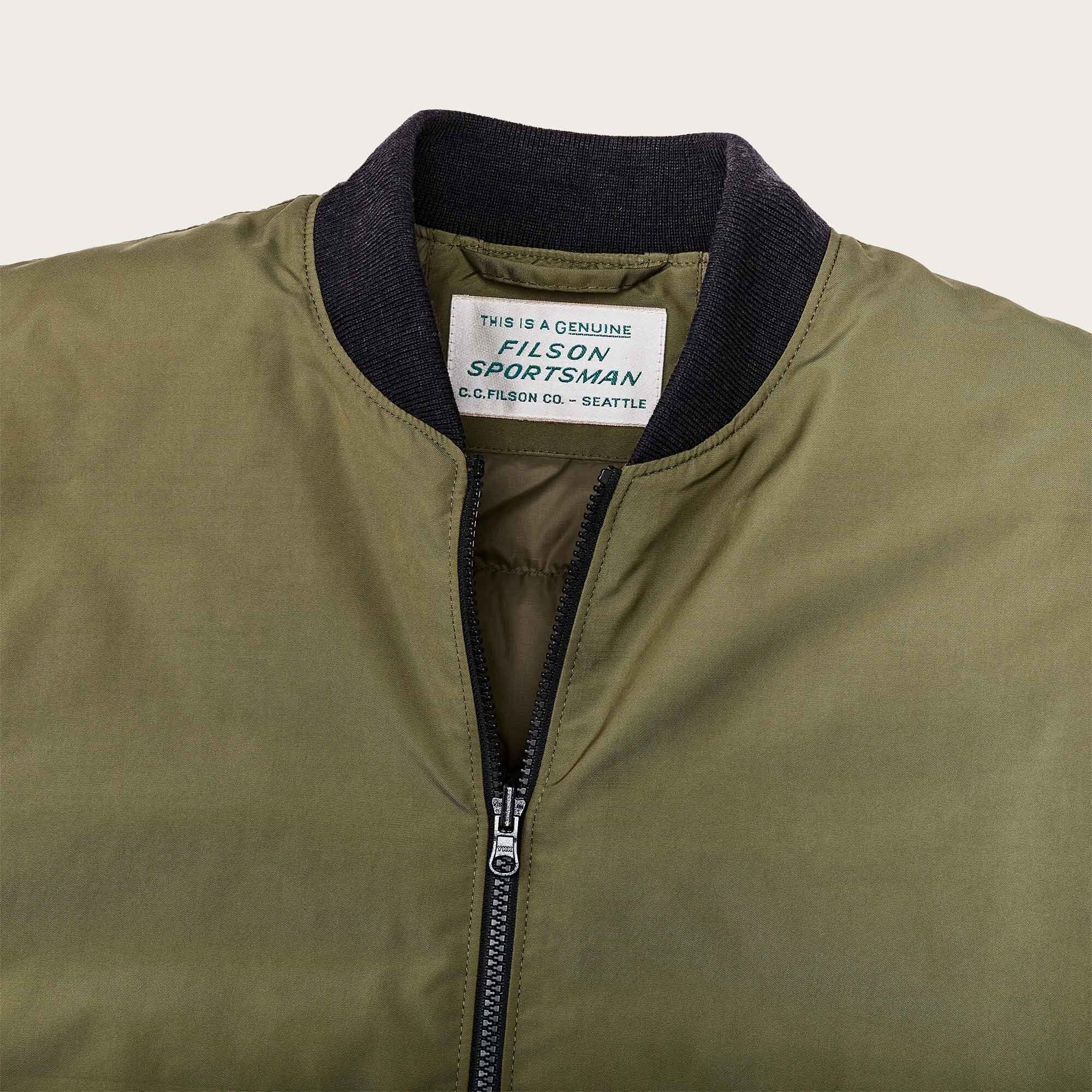 Our Down Liner Jacket pulls double duty as a warm stand-alone jacket or a zip-in liner for select Filson raincoats. The midweight, synthetic shell fabric is water-resistant, downproof, and rugged enough for demanding field use. It’s insulated with goose down, nature’s warmest and lightest insulation. The rib-knit collar and cuffs feature a high wool content for durability and warmth, even if they get wet. This versatile layer zips into compatible Filson jackets and secures at the neck cuffs with buttons.