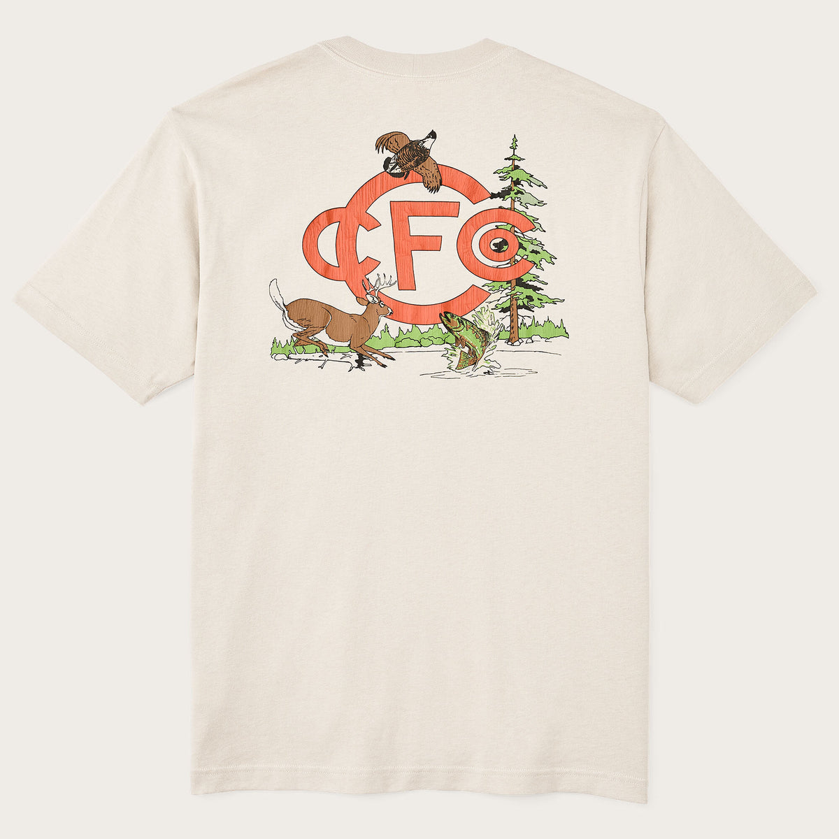The Frontier Graphic T-Shirt is made with sturdy dry-hand 6.5-oz. cotton jersey. Its thickness and texture set it apart from typical T-shirts. The durable rib-knit collar retains its shape wash after wash. Custom graphics are unique for this season and designed in-house