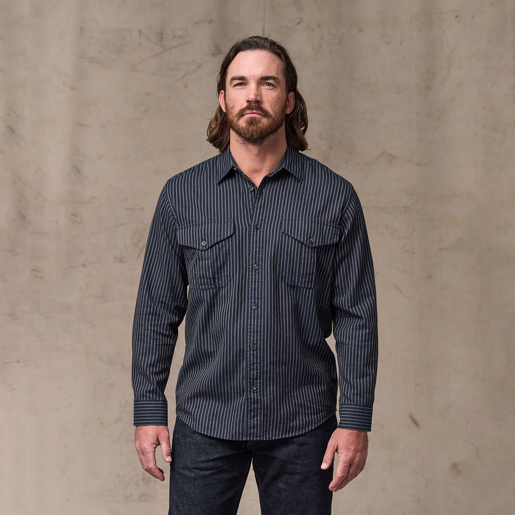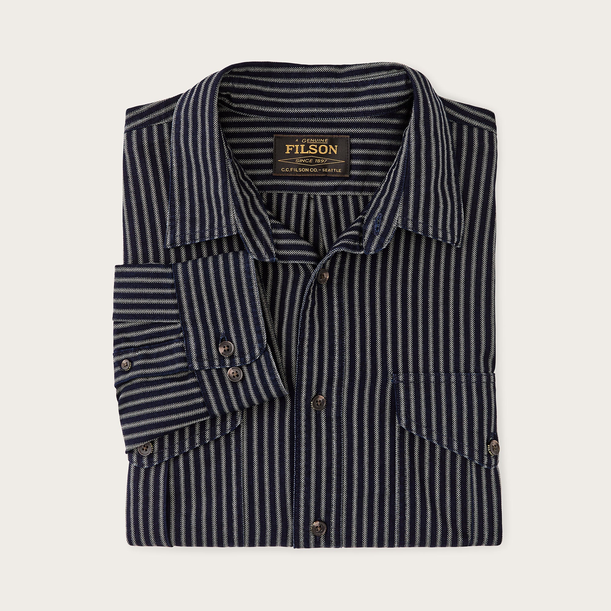 - Gusseted button-flap chest pockets