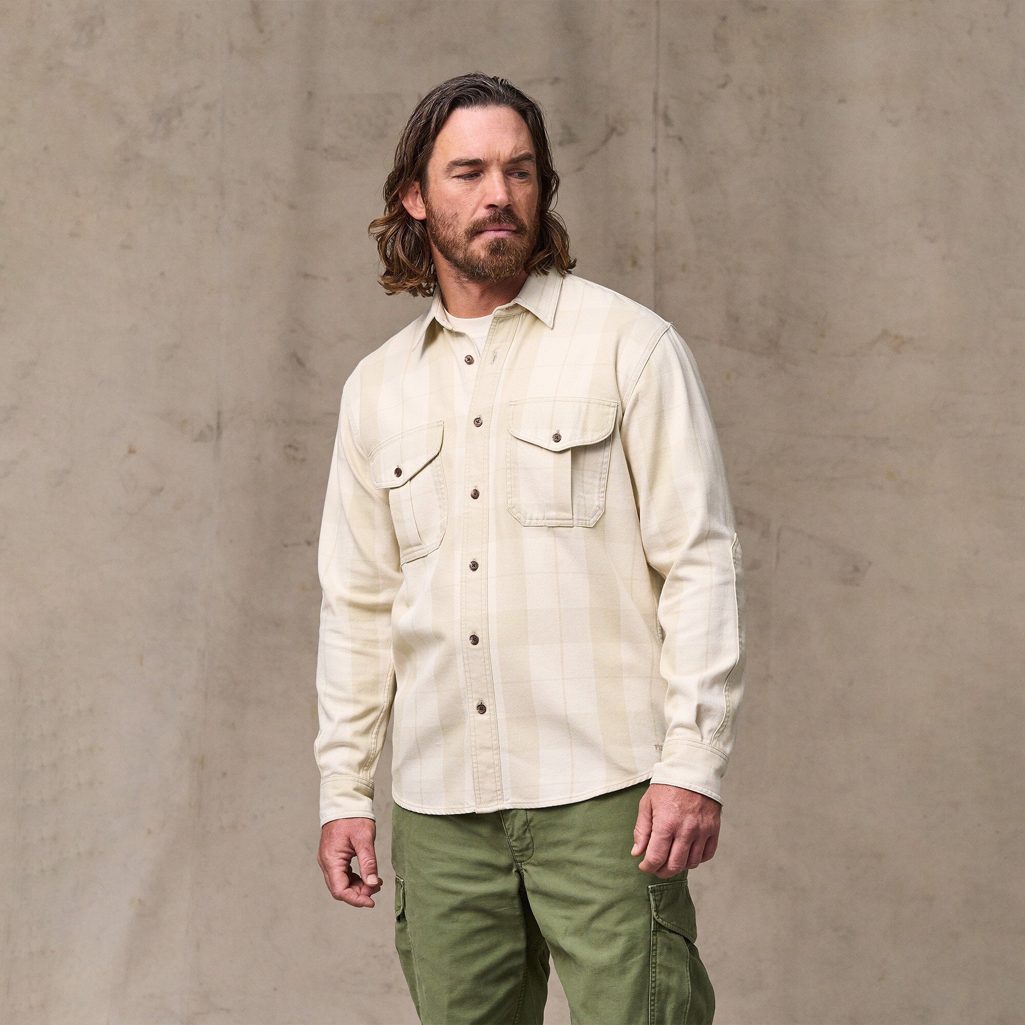Our Alaskan Guide Shirt has been a mainstay trusted by bush pilots, sportsmen, ranchers, and tradesmen for a quarter-century for its warmth, durability and comfort. This Vintage Wash version has been heavily prewashed for shrinkage control and to give it a well-worn feel and aesthetic from the outset. The dense cotton is tightly-woven for warmth, durability, and wind resistance, then brushed on both sides for softness and next-to-skin comfort. The fit is our standard relaxed fit, with a center-back pleat added ease of motion. Button-secure pocket flaps, adjustable cuffs, and front closure.