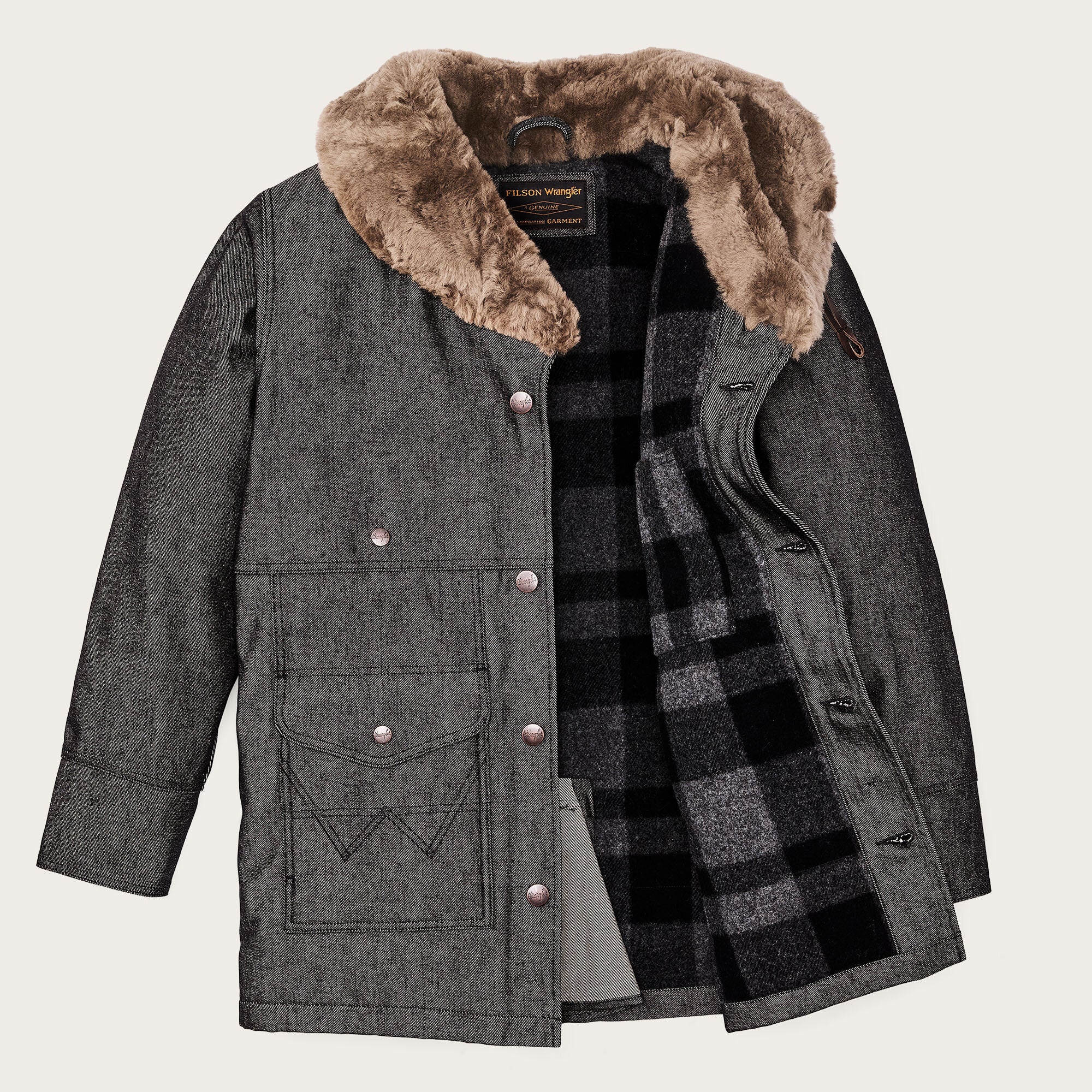 14.5- 100% cotton denim + 24-oz./LY 100% wool + PrimaLoft® insulation + 100% wool sheepskin shearling