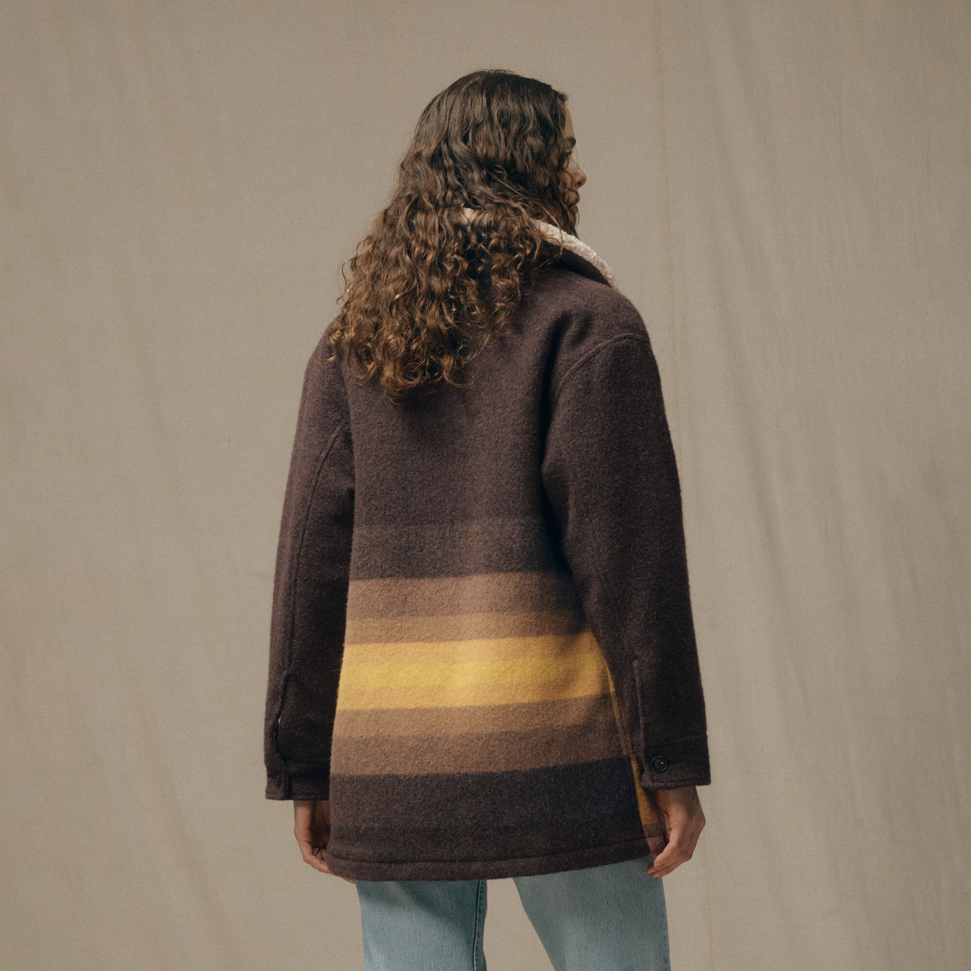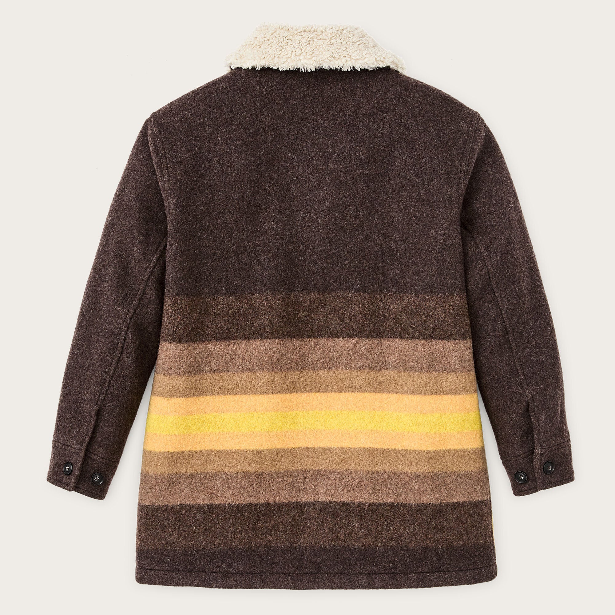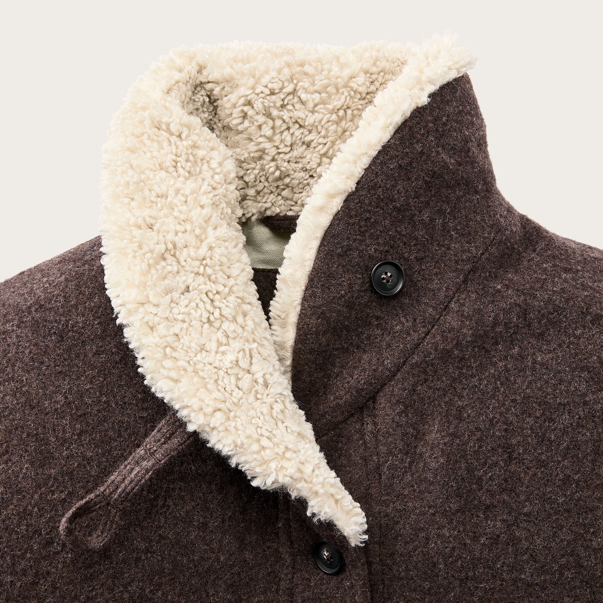 Made with Mackinaw Wool, our iconic signature fabric with a 120-year legacy of weather protection. Cut longer and insulated with cotton flannel for added warmth and comfort. The sleeves are lined with polyester twill that slides easily over layers. The luxuriously soft high-file fleece collar provides coverage to the ears when extended, and can be secured at the throat with a buttoning tab. Button-front closure and snap-adjustable cuffs. Two front cargo pockets with snapped flaps.